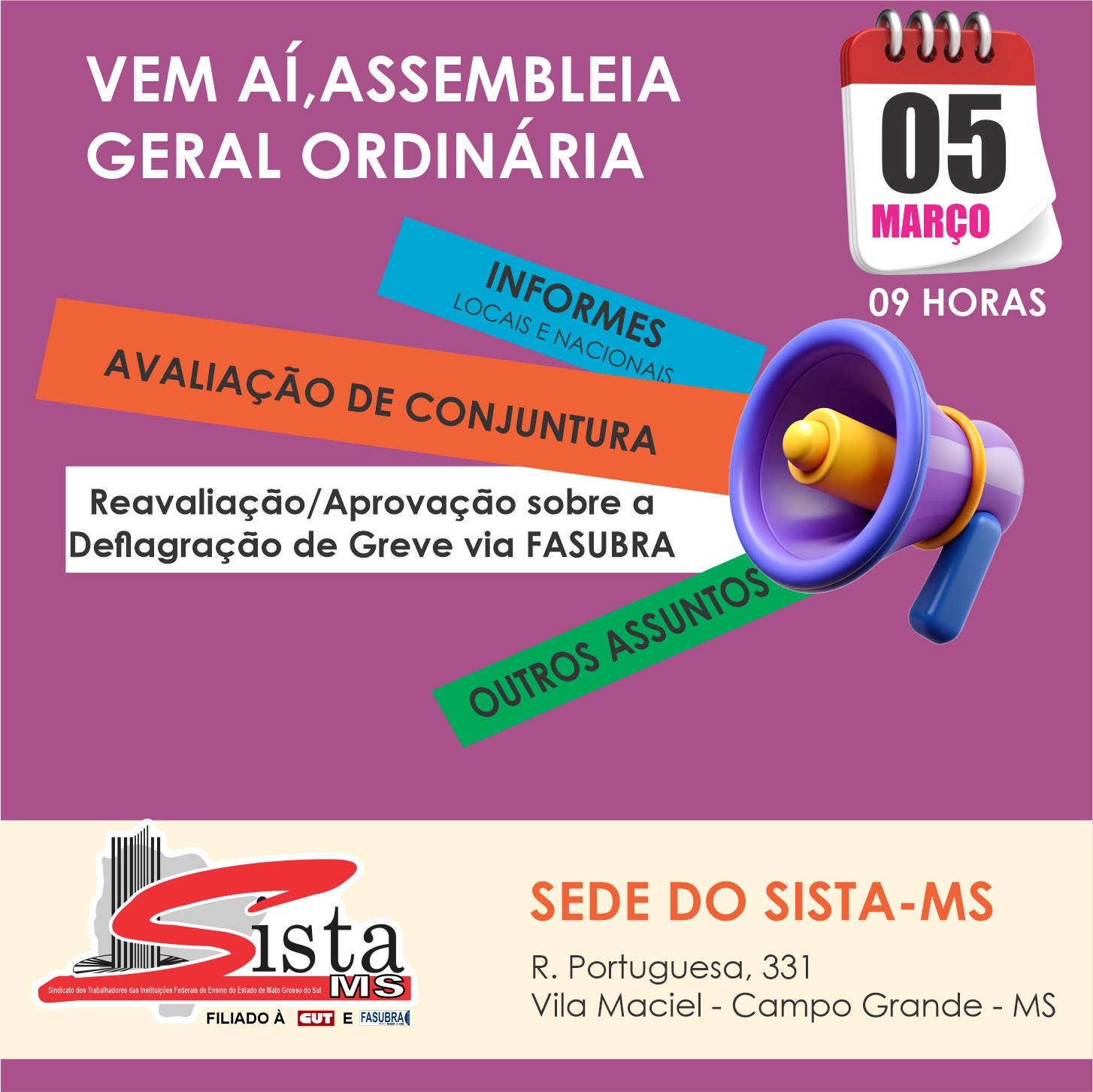 EDITAL Nº 003/2026 DE ASSEMBLEIA GERAL ORDINÁRIA PRESENCIAL COM TRANSMISSÃO AO VIVO DO SISTA/MS