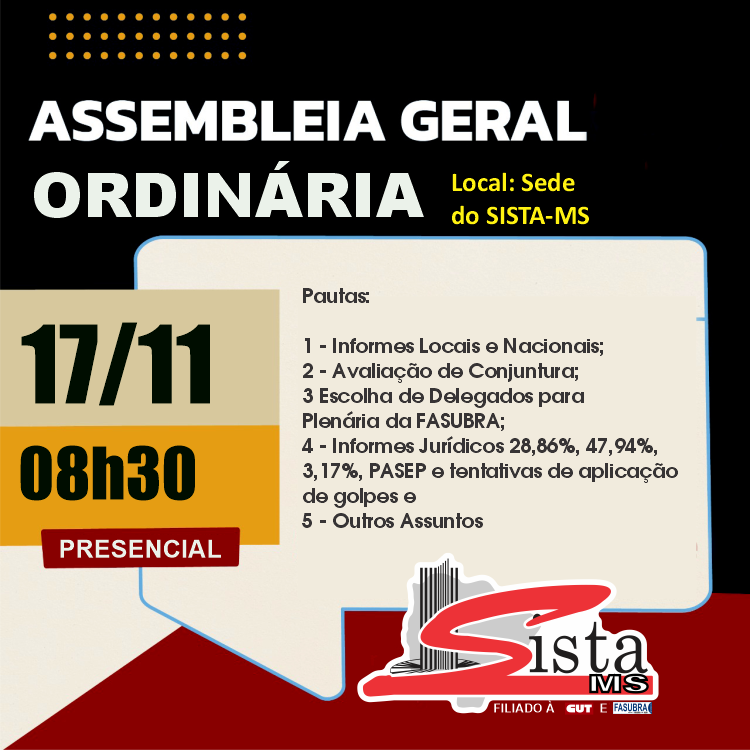 EDITAL N. 010/2023 DE ASSEMBLEIA GERAL ORDINÁRIA DO SISTA-MS Edital nº 10-2023 - Assembleia Geral Ordinária do SISTA