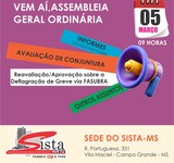 Edital 001/2026 -Assembleia Geral Extraordinária Presencial com transmissão ao vivo do SISTA-MS