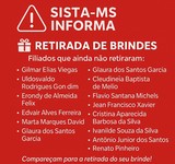 SISTA-MS INFORMA - Lista para entrega dos brindes – filiados que ainda não retiraram: