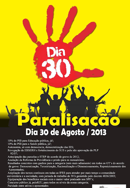 PARALISAÇÃO DOS TRABALHADORES NA UFMS E NA UFGD NESTE DIA 30 DE AGOSTO