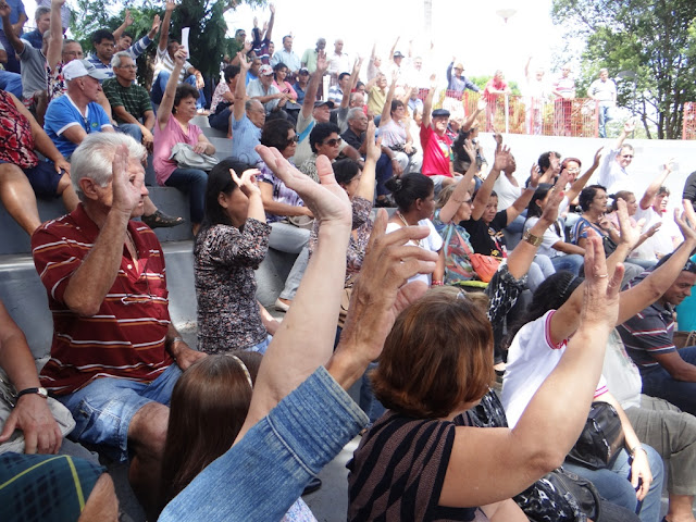 | Concha acústica ficou pequena para abrigar as centenas de trabalhadores, que aprovaram ação e investimento para ajudar custear despesas jurídicas |