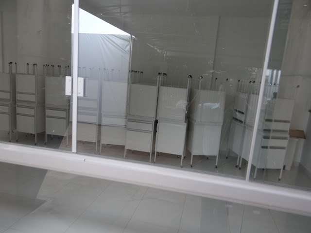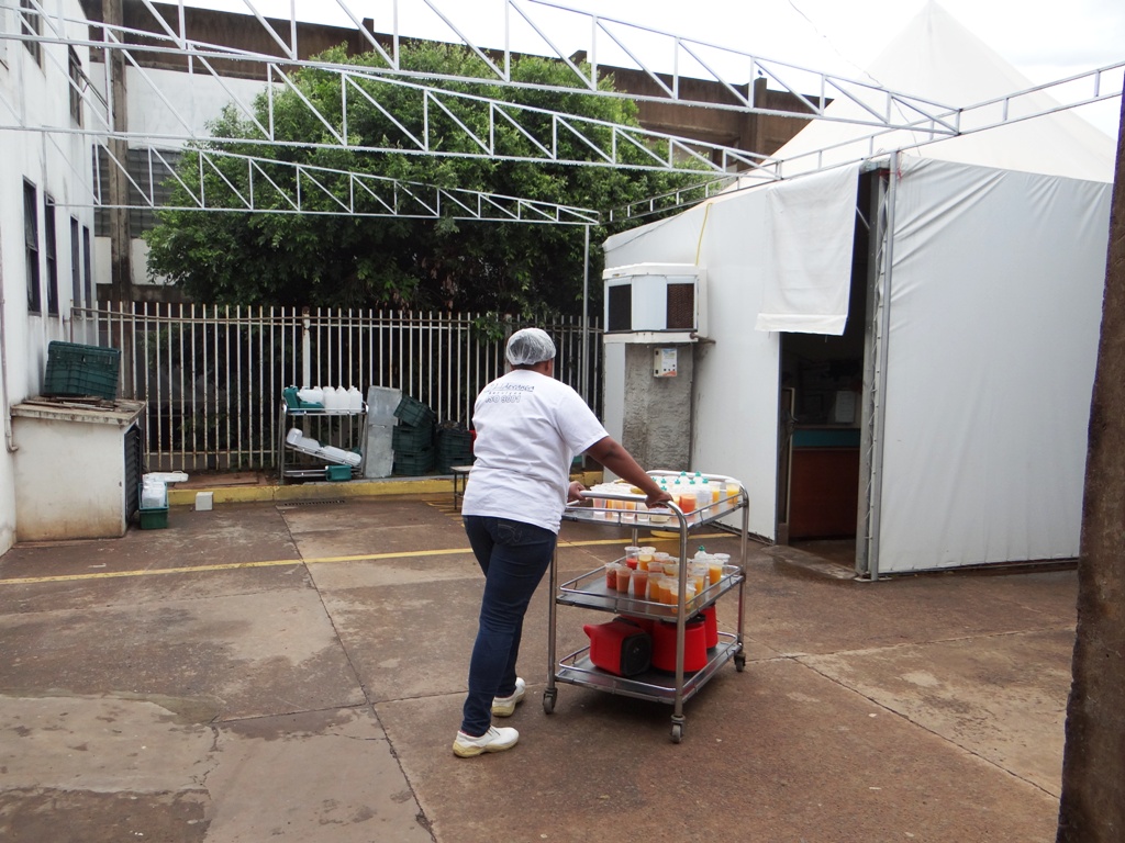 Por falar em provisório, o setor de Nutrição do HU de Campo Grande está funcionando nesta situação desde fevereiro do ano passado. Os trabalhadores estão amontoados dentro de uma tenda instalada ao lado do prédio e expostos a todo tipo de intempérie do tempo. “Quando é frio o local fica um gelo e no verão o calor é de derreter e coloca em risco até a sanidade dos alimentos, isto sem falar no terror quando chove e alaga tudo aqui dentro”, afirma um dos trabalhadores da Nutrição.