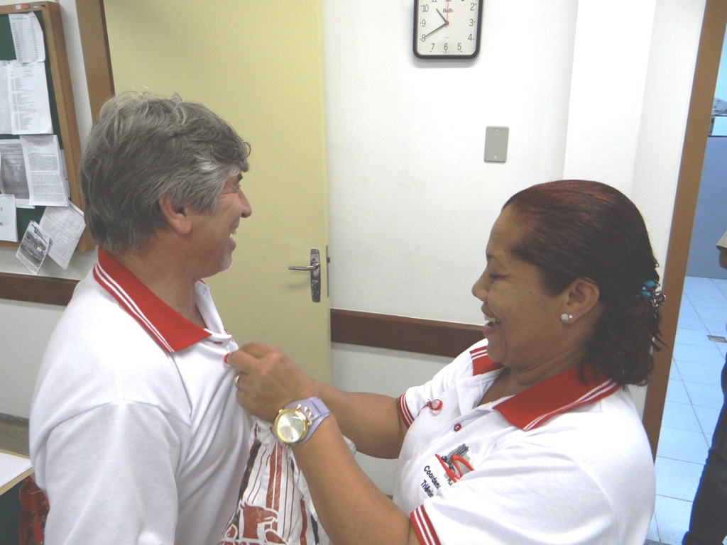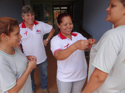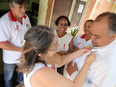 Para Adhemar, Cida e Deise, a entrega do laço símbolo da luta contra a AIIDS foi um momento de muita satisfação, não somente pela reação positiva das pessoas, mas porque a ação é humanitária. “Esta atividade nos faz muito bem i enquanto seres humanos”, afirmam os dirigentes.