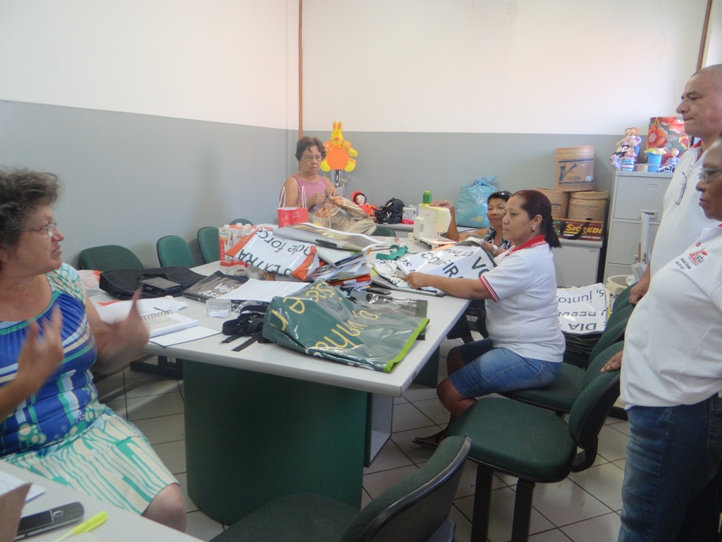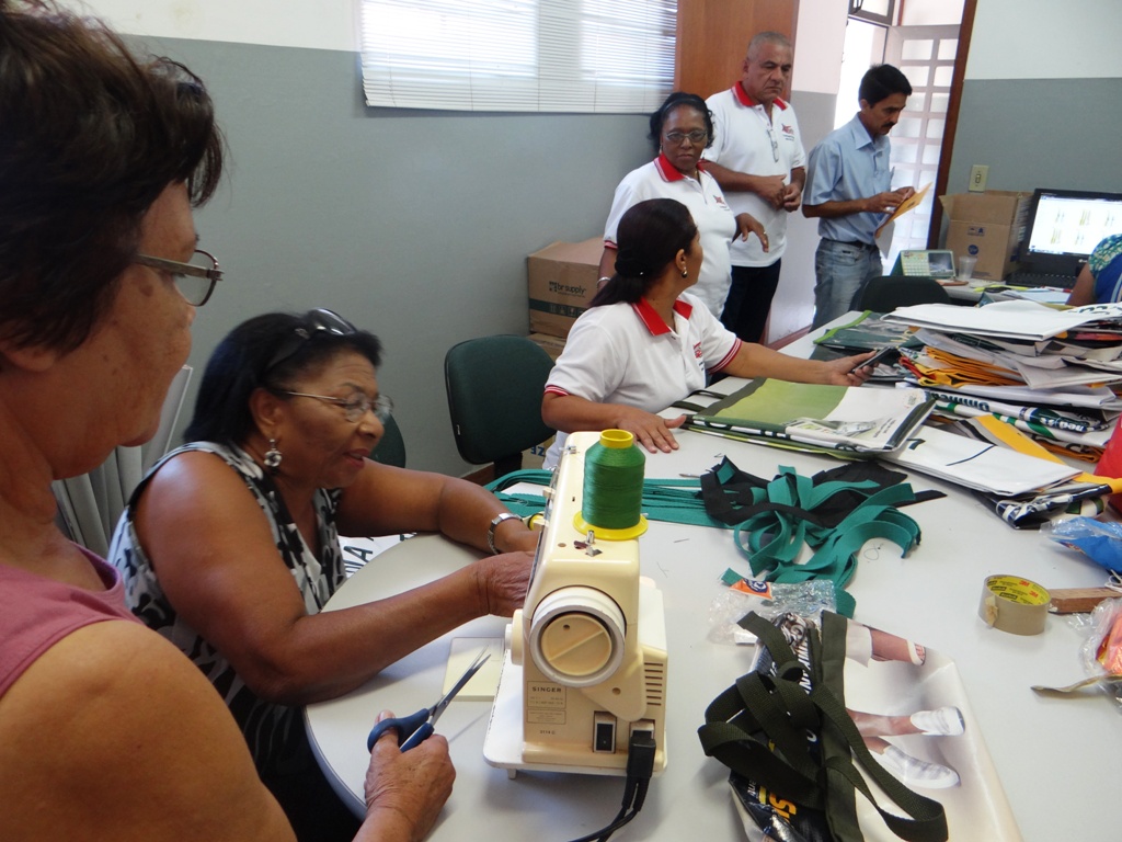 Aposentadas trabalham na confecção de bolsas sustentáveis, que serão distribuídas neste dia 24