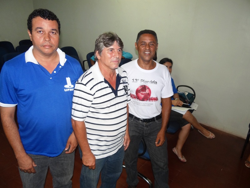 | Adhemar, da direção do SISTA/MS entre Carlos (e) e Valdecy, delegados de Aquidauana |