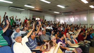 Momento em que os trabalhadores votavam pela aprovação da paralisação no dia 30 de agosto