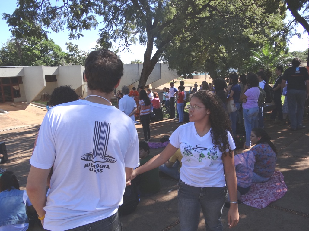 O pátio do Restaurante Universitário (RU) da UFMS foi placo de uma assembléia conjunta no final da manhã desta quinta-feira (14). Professores, estudantes e técnicos se uniram para um grito em defesa da educação e, no âmbito local, por mais democracia e participação dos segmentos que compõe a Universidade.