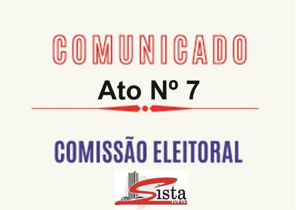 Publicamos para conhecimento o Ato Nº 7 da Comissão Eleitoral Central do Sista/MS designando a Comissão Eleitoral para a seccional de Aquidauana.