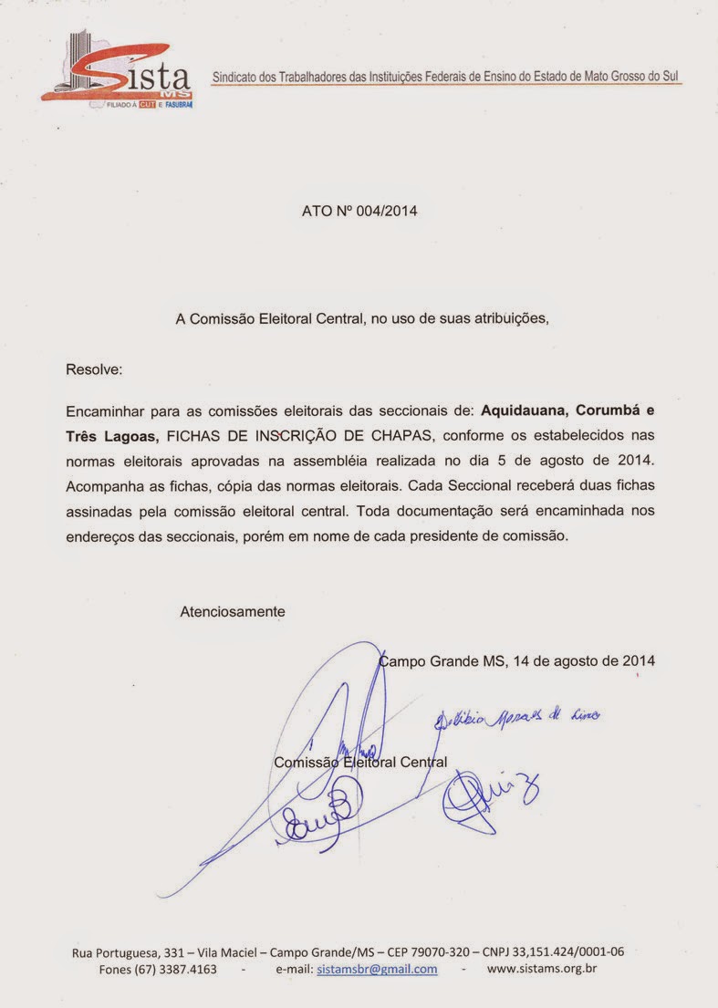 Ato nº 04-2014 - Comissão Eleitoral Central