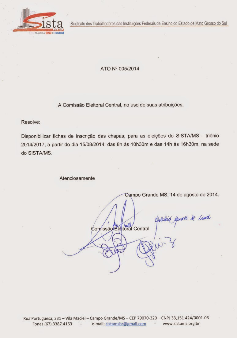 Ato nº 05-2014 - Comissão Eleitoral Central