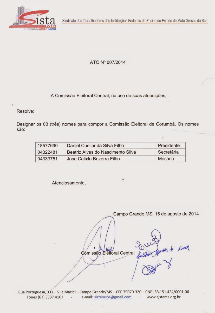 Ato nº 07-2014 - Comissão Eleitoral Central
