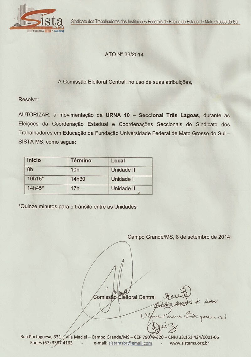 Ato nº 33-2014 - Comissão Eleitoral Central