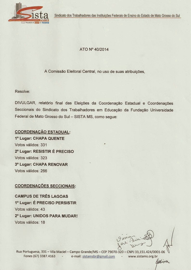 Ato nº 40-2014 - Comissão Eleitoral Central