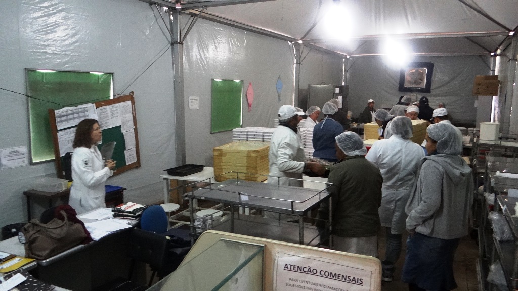 Os trabalhadores do setor de Nutrição do Hospital Universitário da Universidade Federal de MS (UFMS) não aceitam mais trabalhar numa tenda improvisada, que molha dentro quando chove, é quente nos dias de sol e gelada quando são dias de frio. “Quando é frio o local fica um gelo e no verão o calor é de derreter e coloca em risco até a sanidade dos alimentos, isto sem falar no terror quando chove e alaga tudo aqui dentro”, afirma um dos trabalhadores da Nutrição.