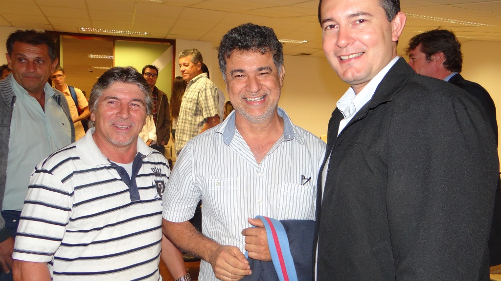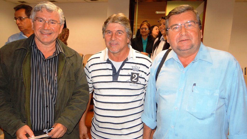 Ademar, do SISTA/MS com o jornalista Gerson Jara (TVE) e Lucio Maciel, presidente do Sindicato dos Radialistas de MS