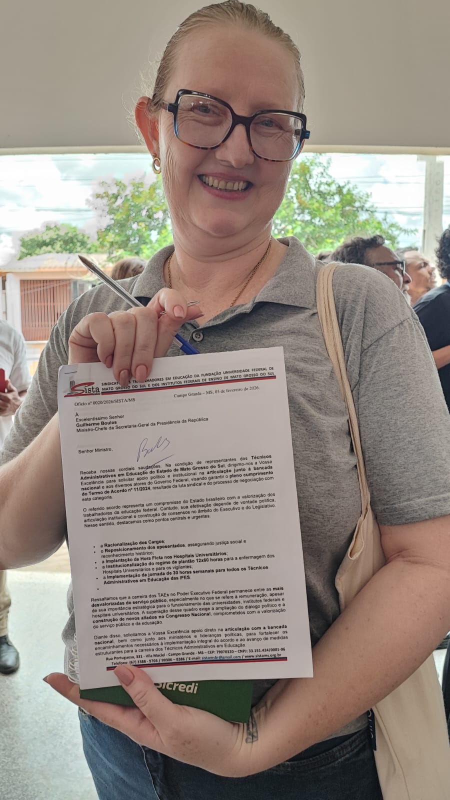 A Coordenadora-Geral do SISTA-MS, Adriane Lucelli Maier, realizou a entrega de um ofício ao Guilherme Boulos, apresentando e reforçando as principais pautas de reivindicação da categoria.