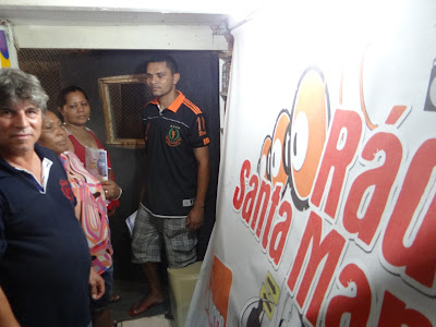 Adhemar, Deise e Cida com o rapper Fiell nos estúdios da Rádio Santa Marta: Comunicação alternativa na favela