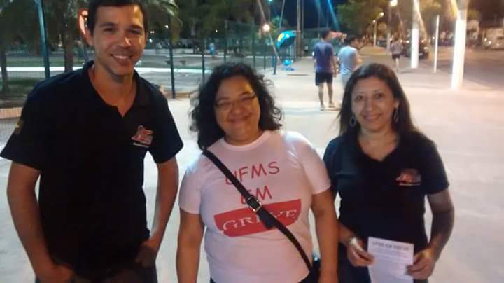 Os trabalhadores técnicos administrativos do campus de Corumbá da UFMS realizaram mais uma ação de greve no centro da cidade. Desta vez foi uma panfletagem no Poliesportivo, tradicional ponto de concentração de pessoas no centro da cidade.