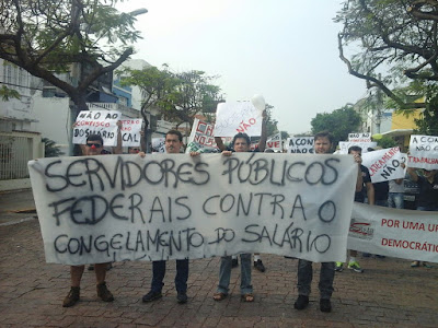 A primeira atividade foi pela manhã, com uma passeata pelo centro da cidade, com faixas, cartazes e gritando palavras de ordem contra o arrocho salarial dos trabalhadores e contra os cortes no orçamento principalmente para a educação.