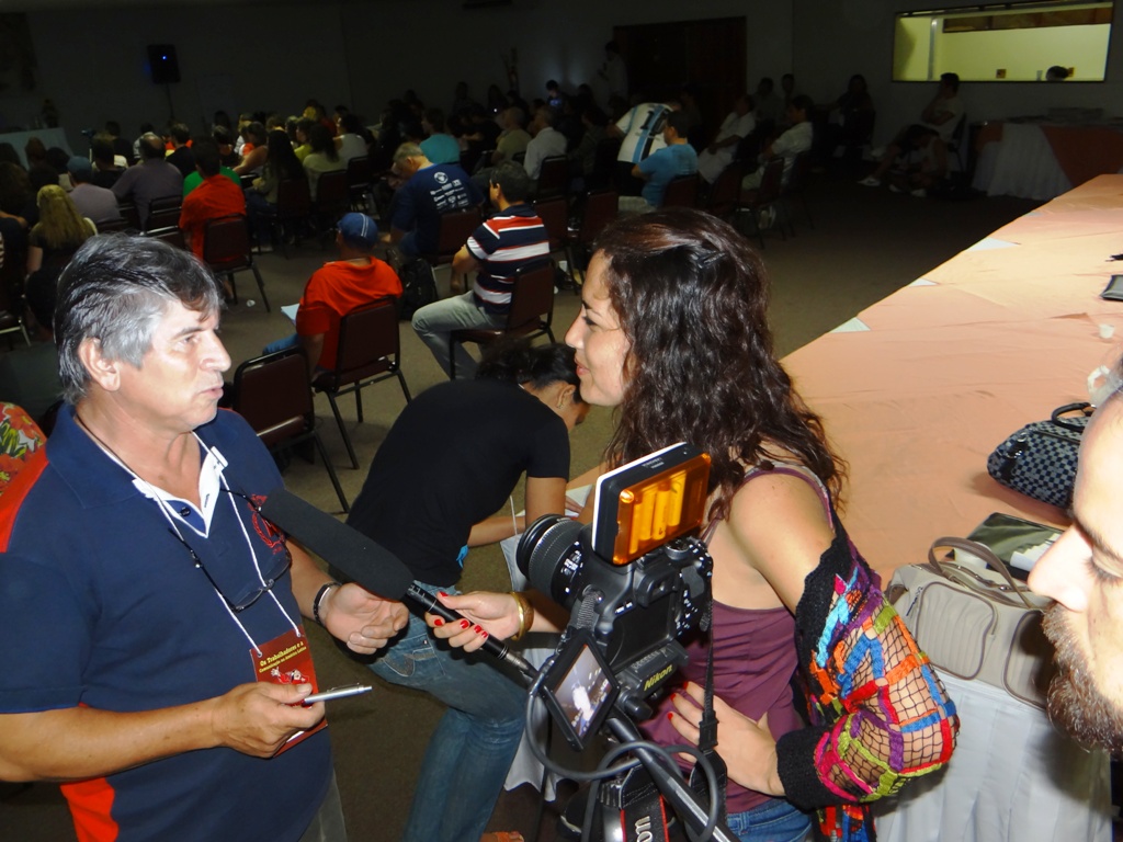 Adhemar é entrevistado pelos jornalistas chilenos Sebástian Soto e Thiare Flor, TV Memória Latina