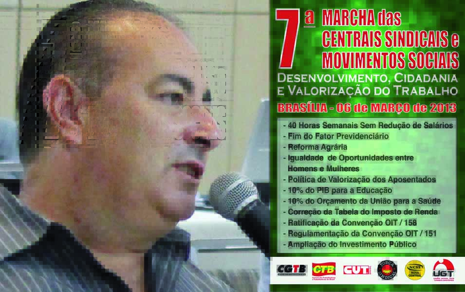 40 horas semanais sem redução de salário; Fim do fator previdenciário; Reforma agrária; Igualdade de oportunidades entre homens e mulheres; Política de valorização dos aposentados; 10% do PIB para a educação; 10% do Orçamento da União para a saúde; Correção da tabela do Imposto de Renda; Ratificação da Convenção 158 da OIT – que impede a demissão imotivada; Regulamentação da Convenção 151 – que estabelece a negociação coletiva no serviço público e a Ampliação do investimento público são os onze itens que compõem a pauta da Marcha. “Nossa pauta é a do desenvolvimento. Essa é a agenda que vamos disputar”, esclareceu o cutista.