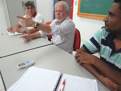 Deputado Biifi entre Adhemar Vilela (e) e Lucivaldo Santos, da coordenação geral do SISTA/MS: Apoio às lutas do sindicato
