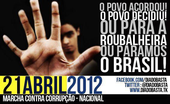 Dia 21 de abril iremos às ruas mais uma vez!Levante-se do sofá! Cobre por dignidade e por um Brasil mais justo!Participe do Dia do Basta!Mais informações no