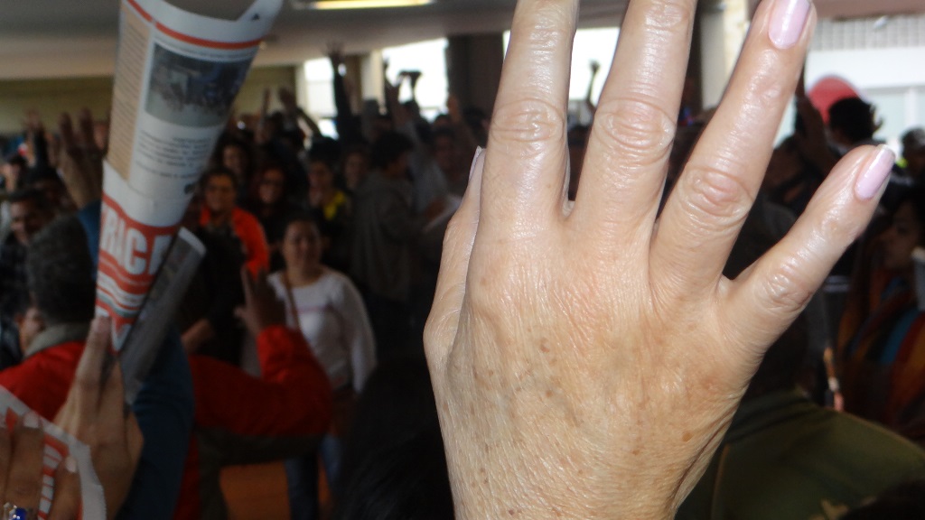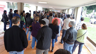 Uma prova de que a greve foi "abraçada" pelos técni@s se deu na terça-feira (2), quando centenas de pessoas enfrentaram uma manhã fria e chuvosa para participar da assembléia geral no setor bancário da UFMS.