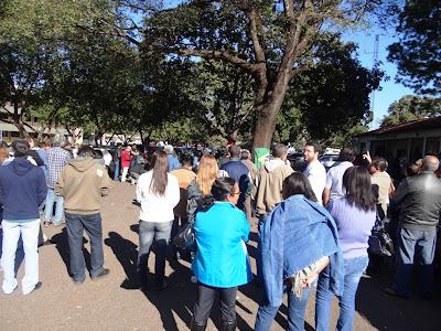 A coordenação Estadual do SISTA/MS e os comandos de greve dos técnicos administrativos da UFMS e da UFGD realizaram assembleias de greve na manhã desta quarta-feira (18) em Dourados e Campo Grande. Os dois atos contaram com um número expressivo de trabalhadores, que enfrentaram a manhã gelada para reafirmar o compromisso de luta por melhorias nas condições de trabalho e salário.