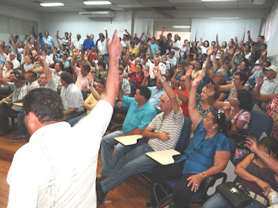 Contra os 47,94% conseguimos vencer a primeira batalha, pois a Justiça concedeu liminar ao mando de segurança coletivo impetrado pela assessoria jurídica do sindicato.Neste dia 3 de maio, centenas de trabalhadores se reuniram no anfiteatro do CCHS, na UFMS, para expressar, mais uma vez, o protesto contra as perseguições que veem ocorrendo. A assembléia nesta sexta-feira foi do PSS e os trabalhadores aprovaram mais um embate jurídico para defesa da estabilidade de suas famílias.