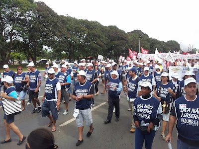Milhares de manifestantes vindos de todas as regiões do Brasil realizaram uma grande marcha, no centro de Brasília, nesta quarta-feira (24). O movimento contou com a participação de mais de 20 entidades representativas dos trabalhadores, que promoveram diversas lutas e exigências ao Governo Federal.