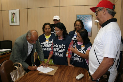Após chegar ao Congresso Nacional, a FASUBRA se dirigiu ao Ministério da Educação para protocolar ofício com o resultado do Plebiscito Nacional, realizado entre os dias 2 e 19 de abril. O plebiscito, realizado com entidades ligadas a educação e saúde federais, contou com 60.341 votos contra a EBSERH, somente dentro da comunidade universitária. O quantitativo, apesar de bastante satisfatório, ainda pode ser melhor. Diretores da FASUBRA afirmaram que a Federação luta "em defesa da autonomia e da carreira, lutaremos até o último minuto. Conseguimos uma votação favorável, mais ainda vamos aumentar esses 60 mil votos para um milhão".