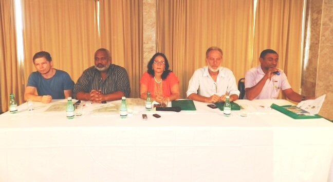Lucivaldo Santos, do SISTA/MS, (à direita e ao microfone) e coordenação geral da Fasubra sindical, fazem a abertura oficial do evento