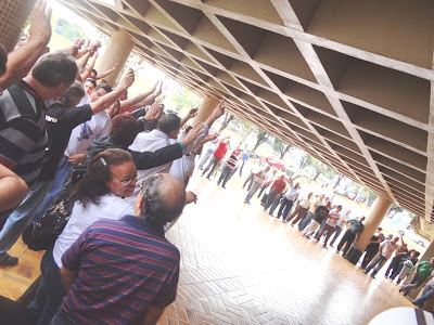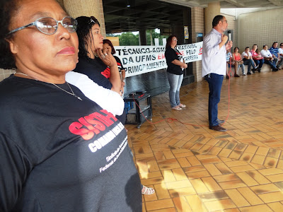 Durante o ato de greve, a coordenação do SISTA/MS junto com o Comando Local de Greve, passaram informes sobre o movimento no âmbito nacional, citando principalmente a abertura de negociação do Comando Nacional de Greve com a Secretaria Geral da Presidência.