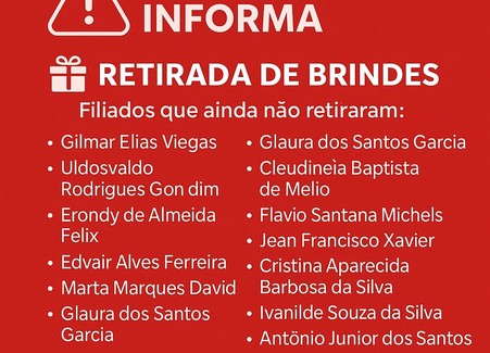 SISTA-MS INFORMA - Lista para entrega dos brindes – filiados que ainda não retiraram: