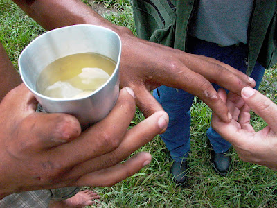 Esses dois momentos, o moderno e o arcaico, se chocam ou se completam devido à sua proximidade física. Durante uma ação de fiscalização em uma fazenda do Mato Grosso, os auditores fiscais do trabalho presenciaram aviões pulverizando o campo com agrotóxicos enquanto os catadores de raízes ainda estavam na área, deixando-os cobertos de veneno.