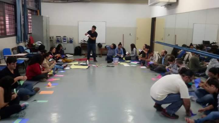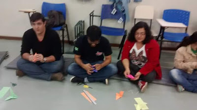 é uma arte tradicional da cultura japonesa que consiste em fazer dobraduras com pequenos pedaços de papel. Animais, elementos da natureza, objetos e figuras humanas são produzidos através das dobraduras. A oficina foi ministrada pelo acadêmico Mauro, do curso de Educação Física e teve ampla participação.