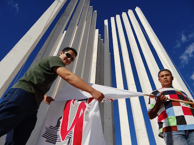Estudantes lacram o "paliteiro" e técnicos empunham bandeira do SISTA/MS
