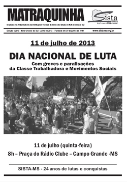 DESTAQUE: 11 de Julho de 2013 - DIA NACIONAL DE LUTA - Com greves e paralisações da Classe Trabalhadora e Movimentos Sociais