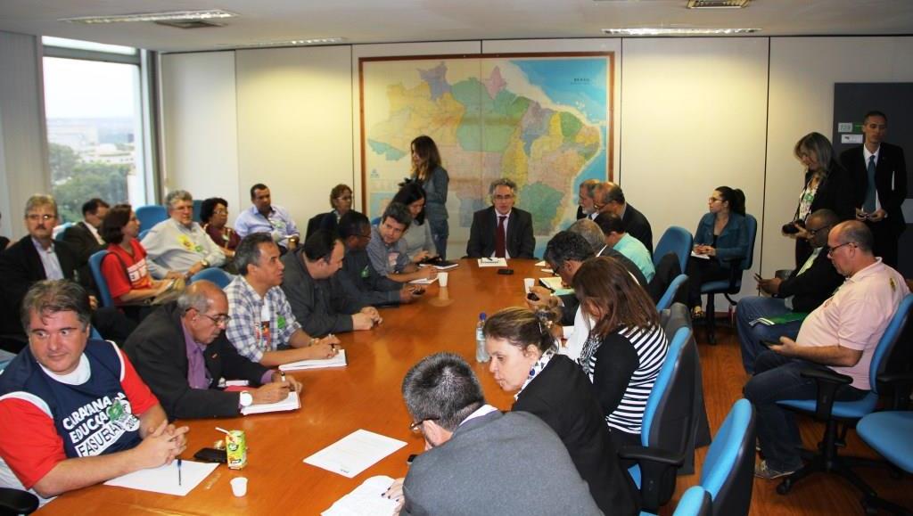 O Fórum das Entidades Nacionais dos Servidores Públicos Federais (Fórum dos SPF) se reuniu com a Secretaria de Relações de Trabalho do Ministério do Planejamento, Orçamento e Gestão (SRT-MPOG) na tarde desta terça-feira (7) em Brasília. O SRT-MPOG não apresentou nova proposta e insistiu no reajuste parcelado em quatro anos que não cobre a inflação. Sérgio Mendonça, Secretário de Relações de Trabalho no Serviço Público do MPOG, iniciou a reunião questionando qual era a resposta dos servidores à proposta de reajuste apresentada no último encontro, de 21,3% parcelados em quatro anos, 5,5% em 2016, 5% em 2017, 4,75% em 2018 e 4,5% em 2019. A resposta foi unânime: as assembleias das categorias rechaçaram o reajuste proposto e também qualquer possibilidade de parcelamento. Em resposta, o SRT-MPOG pediu que os servidores fossem criativos, e que tentassem trabalhar em cima da proposta colocada. Os servidores reafirmaram a luta pelo reajuste de 27,3% em 2016, sem parcelamento, e que também querem debater com o governo os oito demais itens da pauta de reivindicações, como benefícios e a Convenção 151 da Organização Internacional do Trabalho (OIT). O Fórum dos SPF sugeriu que uma nova reunião fosse marcada para a próxima semana, na qual o governo apresentaria melhorias na proposta. Sérgio Mendonça, no entanto, rejeitou a data e afirmou que como apenas a presidente Dilma Rousseff pode decidir sobre o tema, e como ela está viajando e não teria tempo hábil de estudar o tema, uma reunião na próxima semana não seria possível. Foi acordado, então, que uma nova reunião ocorrerá até o dia 21 de julho.