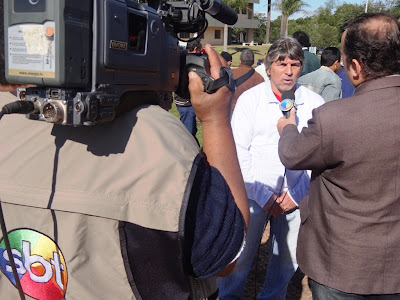 Luiz Carlos Vasconcelos, da coordenação de Finanças, é entrevistado pelo reporter Ari Teodoro, do SBT/MS