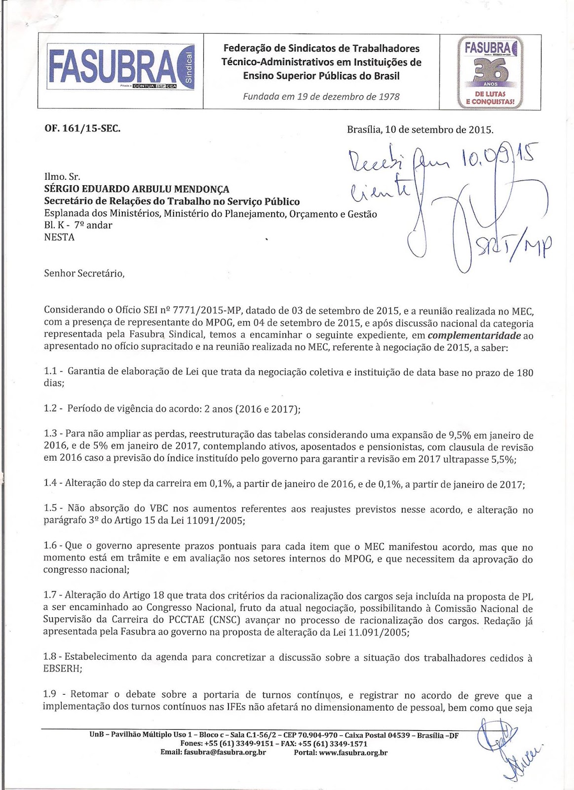 Ofício - Contraproposta da FASUBRA