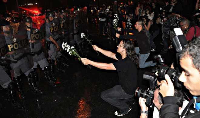 Alguns famosos também já aderiram a causa através da campanha "Dói em Todos Nós", em que aparecem com o olho roxo, fazendo referência à repórter Giuliana Vallones que foi atingida covardemente por uma bala de borracha . Grandes formadores de opinião da internet também gravaram vídeos especiais para esta segunda-feira, elogiando a dimensão e a grande participação popular das manifestações e convidando um número ainda maior de pessoas para participar dos próximos atos que seguirão sendo realizados durante a O cantor Leoni publicou em sua conta no youtube, o clipe da canção "As coisas não caem do céu", que atualmente é um dos vídeos mais acessados e compartilhados do youtube, e que contém imagens reais dos protestos e da opressão sofrida pelos manifestantes.