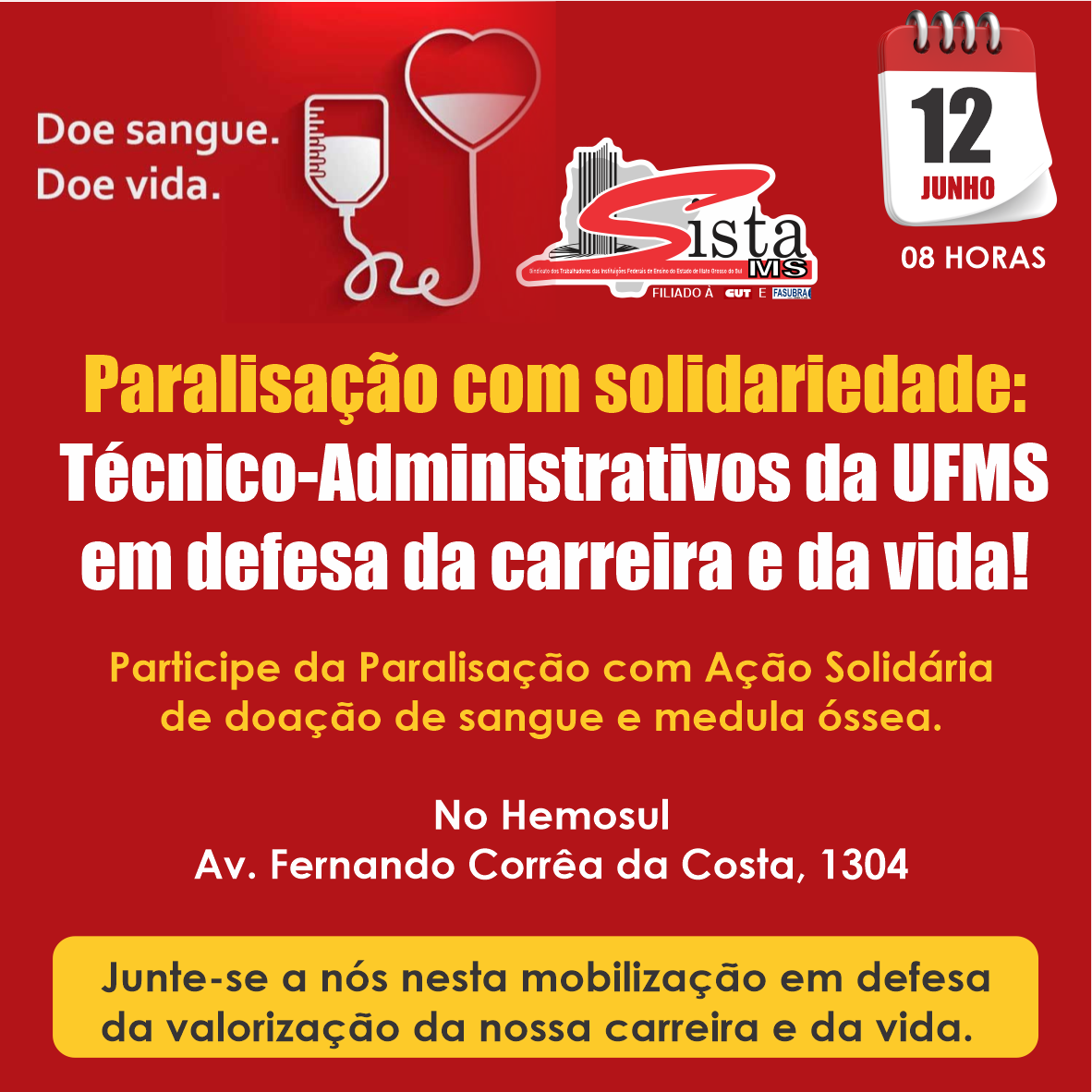 Participe da Paralisação com Ação Solidária de doação de sangue e medula óssea.