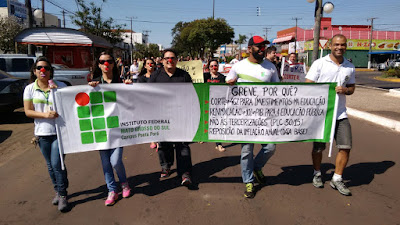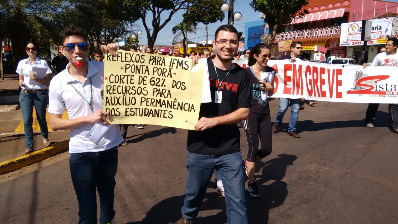 Trabalhadores e estudantes das instituições federais de ensino de Ponta Porã mostraram a greve nas ruas de Ponta Porã.