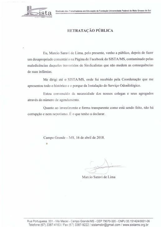 RETRATAÇÃO PÚBLICA