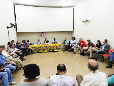 A reunião começou com a apresentação sobre o cenário político atual no país, o processo de mobilização e manifestações pelas principais cidades brasileiras contra o aumento das tarifas do transporte urbano. Em seguida foi aberto debate com a manifestação dos representantes das entidades e os informes de suas categorias, bem como a análise da conjuntura brasileira.