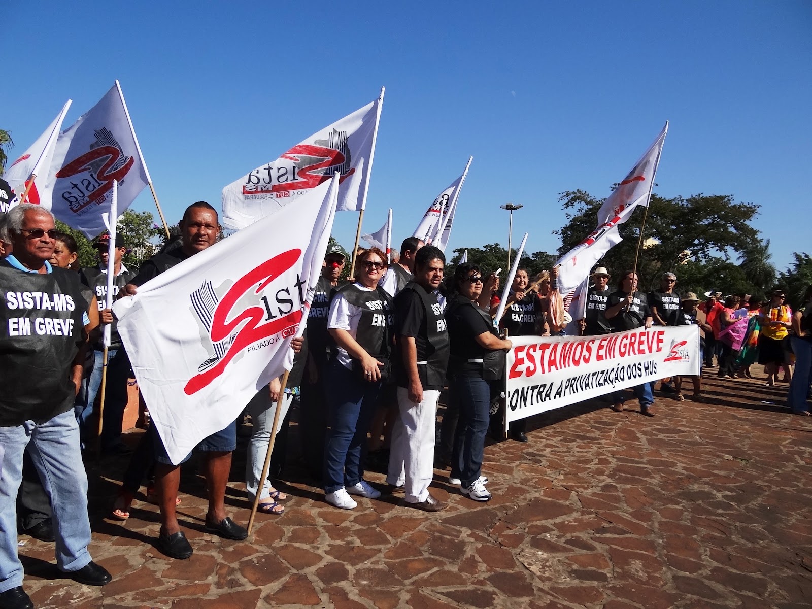 Participaram do ato conjunto servidores representando os servidores da UFMS, POLÍCIA FEDERAL, ANVISA, INCRA, FUNAI, IBAMA, FUNASA, MINISTÉRIO DA AGRICULTURA, entre outros.