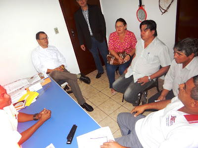 Ao cetro, Jefferson Silveira do SINTTEL/MS, em reunião com coordenadores do SISTA/MS, na sede do sindicato